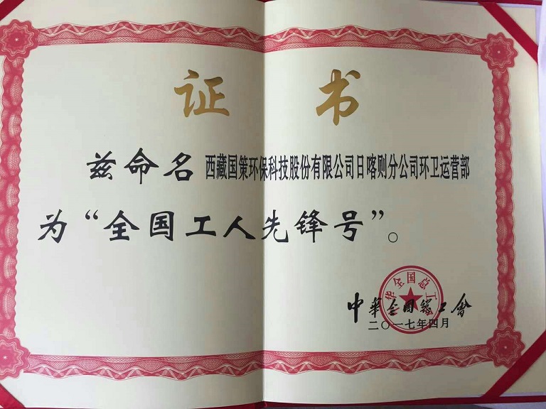 日前,全國總工會召開“五一”新聞發(fā)布會, 通報了一批“2017年全國工人先鋒號”。西藏國策環(huán)??萍脊煞萦邢薰救湛t分公司運營部全體成員在日常工作中勞心勞力、風(fēng)雨無阻、踐行無私奉獻的城市“美容師”精神,被授予“2017年全國工人先鋒號”,是我司首獲此殊榮。