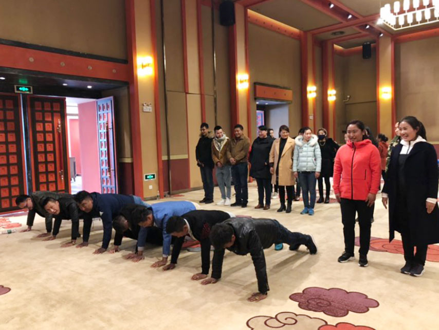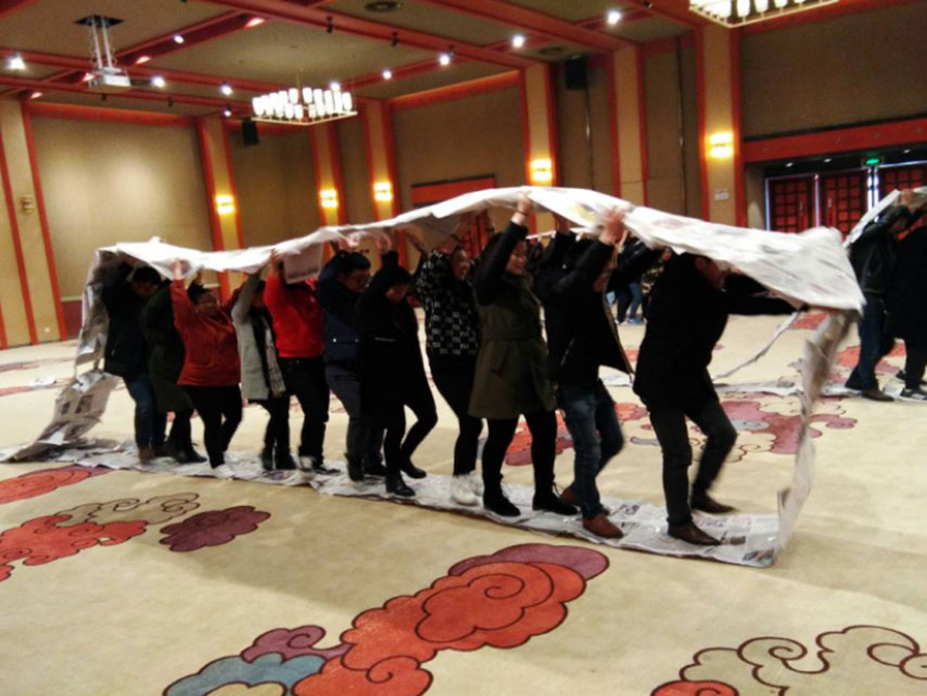 (圖為團隊拓展游戲“無敵風(fēng)火輪”)