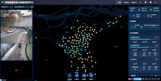 國策環(huán)保在投入機(jī)械化同時(shí)配套完善了智慧環(huán)保平臺(tái)建設(shè),以感知設(shè)備、智能終端等構(gòu)建的物聯(lián)感層與智慧環(huán)保平臺(tái)共同發(fā)揮了對(duì)環(huán)衛(wèi)各要素等進(jìn)行全程實(shí)時(shí)管控和作業(yè)優(yōu)化,國策各分級(jí)指揮中心實(shí)現(xiàn)了對(duì)工作人員的精準(zhǔn)調(diào)配,提高了工作效率。與此同時(shí)來自于甲方對(duì)質(zhì)量的監(jiān)管及公眾的投訴建議與國策智慧環(huán)保保持高效互動(dòng),更進(jìn)一步改善城市公共環(huán)境質(zhì)量。