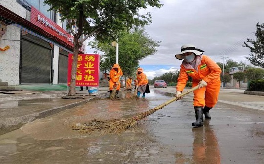 直至6月28日午時,國策環(huán)保山南分公司累計出動環(huán)衛(wèi)工人100余人次、裝載機(jī)10余車次、灑水車20余車次、路面清掃車20余車次,已清理泥土沙石總量約為20噸,市內(nèi)主要干道及泥石流發(fā)生路段已全面清理完成。