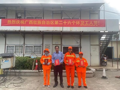 10月26日是廣西壯族自治區(qū)第26屆環(huán)衛(wèi)工人節(jié),國策環(huán)保防城港分公司唐輝、胡錫英、黃愛英、禤立艷、廖艷萍五名員工榮獲防城港城市管理監(jiān)督局“2022年環(huán)衛(wèi)先進(jìn)工作者”。防城港市委副書記、市長黃江親自為他們頒發(fā)榮譽證書,并對他們?yōu)榉莱歉凼兴龀龅呢暙I(xiàn)給予了肯定及鼓勵。